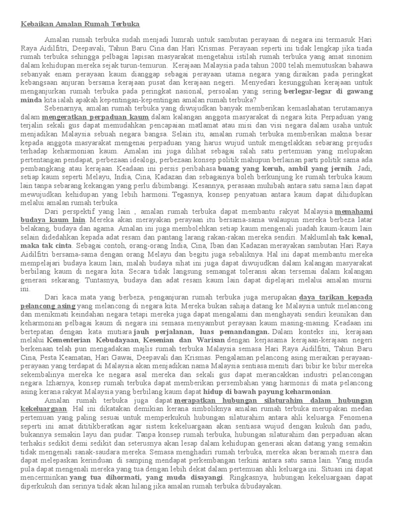 Doc Karangan Cemerlang Spm Kebaikan Amalan Rumah Terbuka Najat Ruhi Academia Edu